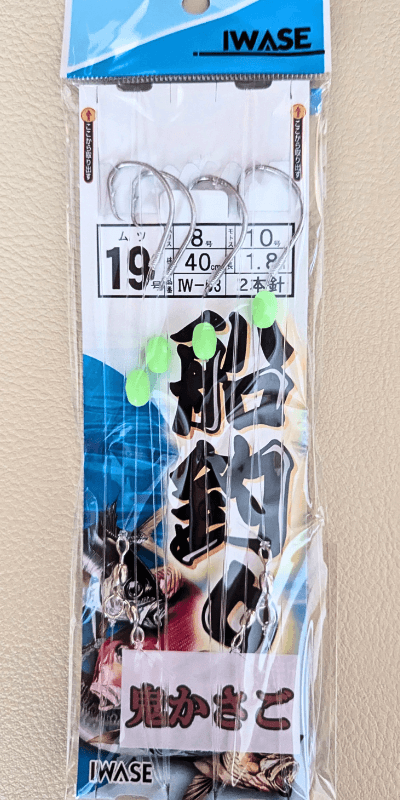 ・天秤式オニカサゴ仕掛。針はバラシを減らすホタ針仕様です。
